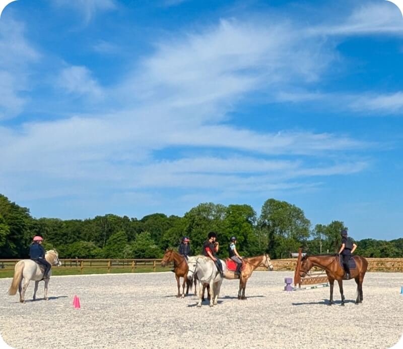 Évoluer en confiance grâce à notre cavalerie sûre, progresser, se faire plaisir en toute simplicité, sans stress ni appréhension, se fixer des objectifs ou même se challenger, chaque cours est adapté au niveau et aux envies de chaque cavalier selon ses attentes et son niveau.